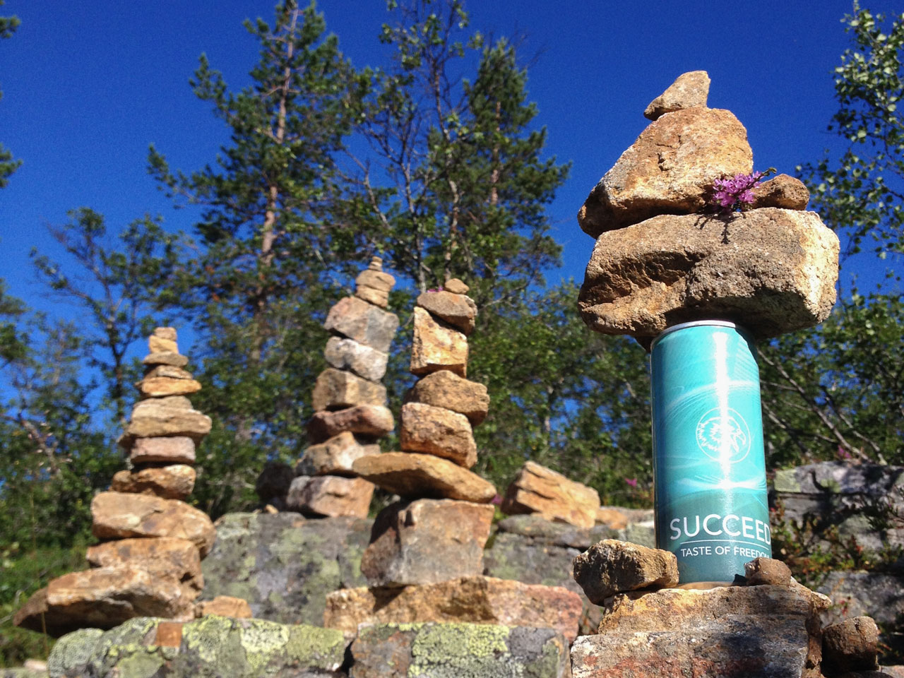Direkt am Wanderwegesrand im finnischen Urho-Kekkonen Nationalpark steht diese Gruppe von Steinmännchen. Ein SUCCEED-Fan liess es sich nicht nehmen, eine der Energydrink-Dosen in Steinmännchen-Pose in Szene zu setzen. Und das alles in der totalen Freiheit der lappländischen Natur "Taste of Freedom".