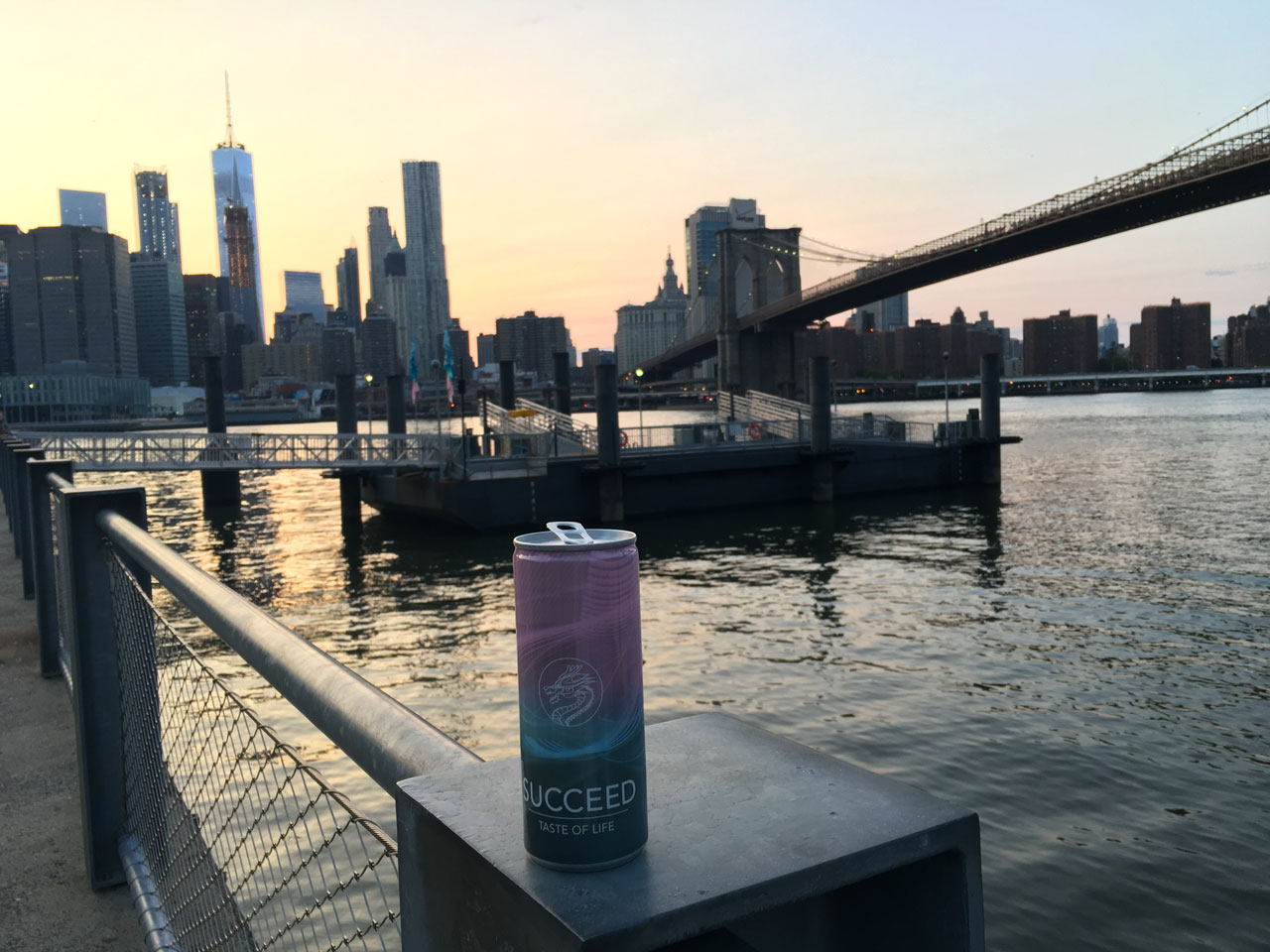 Laue Abendstimmung unterhalb der Brooklyn Bridge mit Sicht auf die Skyline von Manhatten; New York, die Stadt, die niemals schläft. Dennoch wirkt der Anblick der Stadt soft und zart. Gehören nicht auch solche Pastell-Szenen zum "Taste of Life"?