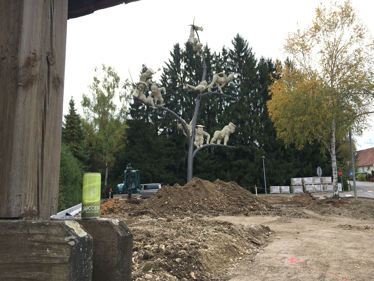 KLETTERN, KLAUEN, IMPONIEREN, PRÜGELN, GRAPSCHEN, SPIONIEREN. Wahrscheinlich würde kein Hahn nach Emmingen-Liptingen krähen, wäre da nicht dieser auffällige SCHELMENBAUM in die Landschaft gepflanzt. Der Name des Kunstwerks lehnt sich wohl daran, dass man früher auch Betrüger Schelme nannte. Nicht nur die Affen im Zoo sind Modell gestanden, sondern auch bekannte Stadtpersönlichkeiten. Hat der Erschaffer des Baums, der Künstler Peter Lenk, einen "tast of glory" zu Gute?