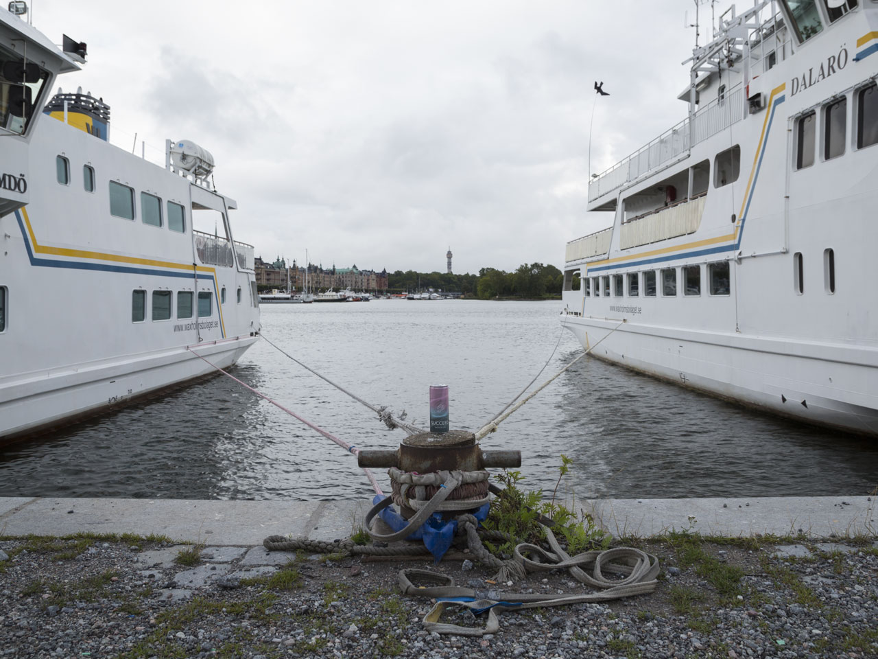 Zwei voluminöse, zu Wasser gelassene Kraftmaschinen werden fixiert mit relativ dünnen Seilen an einer verhältnismässig minimen Haltevorrichtung, die dennoch das ganze Bild zentriert. SUCCEED "taste of life" setzt in dieser Fotografie einen schönen Akzent und wird durch die Komposition des Bildes vorzüglich in Szene gesetzt. Kleine Dose - grosse Wirkung.